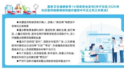 国家卫生健康委、教育部、工业和信息化部、公安部、财政部、商务部、审计署、国务院国资委、国家税务总局、国家市场监管总局、国家医保局、国家中医药局、国家疾控局、国家药监局等全国纠正医药购销领域和医疗服务中不正之风部际联席工作机制14部委昨天联合发布了《关于印发2025年纠正医药购销领域和医疗服务中不正之风工作要点》,共分为4个部分15项内容。