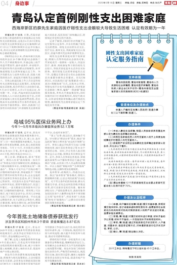 早报6月17日讯 日期,西海岸新区灵珠山街道的薛先生家庭被认定为刚性支出困难家庭,这是自4月25日《青岛市刚性支出困难家庭认定实施细则(试行)》(以下简称《细则》)出台并实施以来,我市认定的首例刚性支出困难家庭,标志着政策落地。