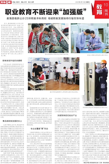 记者了解到,近年来,青岛始终坚持把发展职业教育摆在重要位置,以国家首批产教融合试点城市和山东省职业教育创新发展试验区建设为契机,聚焦人才培养水平和服务产业能力双提升,构建市域现代职教体系建设新模式。出台职教高地建设方案,抢抓部省共建职教高地机遇,推动职教高地建设顺利收官;印发职业教育创新发展三年行动计划,启动中职学校提质扩优、高职办学规模扩增等六项工程,进一步完善区域现代职教体系建设的政策框架。近5年新增4所高职院校,青岛市两次获评“山东省职业教育改革发展成效明显的市”。