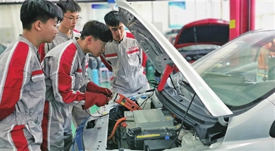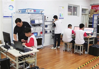 青西职专学生学习新能源汽车相关专业。