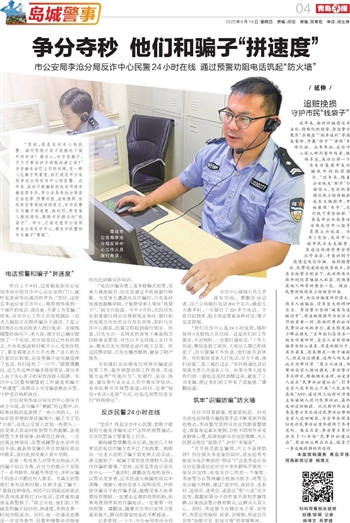 “您好,我是反诈中心的民警。请问您刚才是不是接到了境外的电话?请当心,对方是骗子,千万不要给对方转账或者汇款!”当诈骗电话盯上你的时候,有一群人比骗子更着急,他们就是市公安局李沧分局反诈中心的民警。近年来,面对不断翻新的电信网络诈骗犯罪手段,市公安局李沧分局在打击犯罪、预警劝阻、追赃挽损、宣传防范等领域持续发力,反诈民警们与骗子拼速度、抢时间,帮受害人挽回损失,默默守护群众的“钱袋子”。昨日,记者走进市公安局李沧分局反诈中心,看反诈民警如何与骗子“赛跑”。