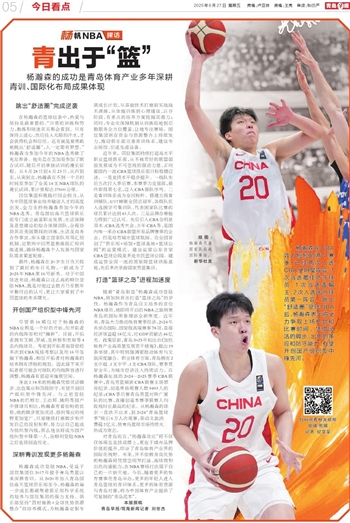 对青岛而言,“杨瀚森效应”将不仅仅体现在竞技成绩上,更在于城市品牌价值的提升,印证了青岛体育产业界的国际化视野。未来,并不依赖身高优势的杨瀚森将凭借空间型打法、高球商和出色沟通能力,在NBA赛场打出属于自己的一片新天地。今后,随着更多的体育赛事在青岛举办,更多的年轻人进入青岛篮球的青训体系,更多的体育资源与青岛对接,将为中国体育产业提供了可复制的“青岛范本”。