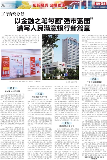 金融活,经济活;金融稳,经济稳。工行青岛分行正以实干担当诠释大行责任,用创新服务书写时代答卷,以领军银行姿态为青岛“金融强市”建设贡献工行力量。