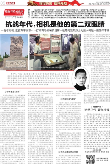 “这台相机,在抗战年代,它是一位爱国青年锐利的眼睛,记录着民族的灾难和人民的奋起,这位青年学生就是烈士周浩然。”随着讲解深入,周浩然的形象愈发立体。“这位出生于青岛即墨的青年,自幼饱读诗书,却在民族危亡之际毅然弃学从戎,投身革命事业。从此,周浩然笔枪共举,生命不息,战斗不止。”讲解员的声音略带哽咽。展厅内,参观者俯身凝视遗物,年轻学生小李轻声感叹:“原来革命不只有枪林弹雨,还有用相机、用文字守护信仰的坚守,周浩然烈士让我看到了知识分子的另一种担当。”离开纪念馆时,夕阳的余晖为展厅镀上一层金色。那台沉默的相机和泛黄的札记,依然静静地摆放在那里,它们是周浩然烈士留给后人最珍贵的遗产——不仅是对历史的见证,更是对理想信念最生动的诠释。