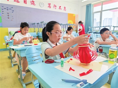 劳动技能创新大赛上,学生们巧手做灯笼。 青报全媒体/观海新闻记者 董真 摄