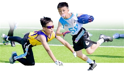 ◀“青岛杯”主打的腰旗橄榄球赛事精彩纷呈。市体育局供图