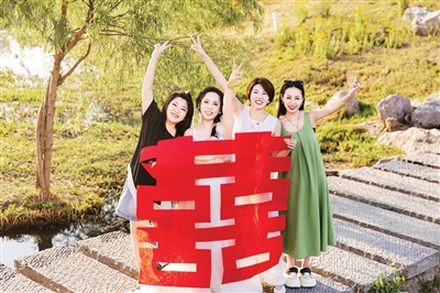 客人们在即墨莲花田园“供销人家”民宿拍摄婚礼外景照片。