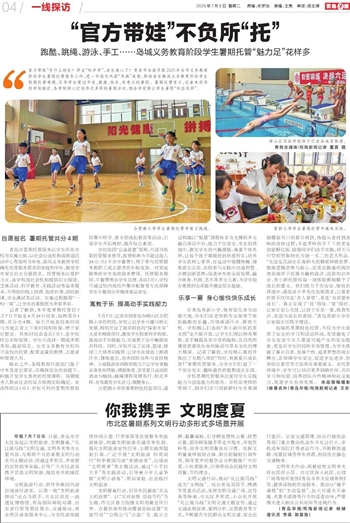 早报7月7日讯 日前,青岛市市北区发起以文明旅游、文明餐桌、“礼让斑马线”文明交通、文明养犬等为主要内容,为期两个月的暑期文明行动系列主题活动,将通过多形式、多场景的宣传倡导实践,引导广大市民游客携手营造文明和谐、规范有序的城区环境。