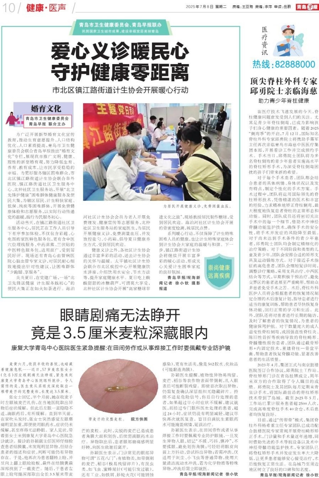 A01 头版 A02 划重点 A03 青岛故事 A04 一线探访 A05 相约金沙滩 醉美西海岸 A06 都市圈 A07 身边事 A08 健康 A09 健康 A10 健康·医声 A11 常青树 A12 天下