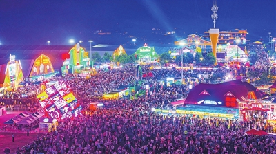 金沙滩啤酒城的9个啤酒大篷人潮涌动。