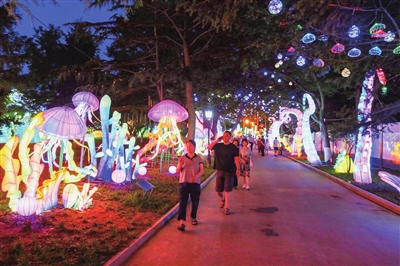 当30多米长的巨型章鱼灯组出现在眼前,绚丽的珊瑚蓝水母在夜幕下变幻光影,如同深海精灵般翩翩起舞,很难让人走出这片奇妙的海洋梦幻世界。