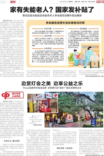 截至目前,青岛常住老年人口约238万人,按照国家抽样比例6%计算,青岛约有中重度失能老人14万人。如何兜牢兜准中重度失能老人的刚性养老服务需求,是养老服务的“必答题”。近日,青岛市民政局、青岛市财政局联合下发了《关于向中度以上失能老年人发放养老服务消费补贴项目实施方案》,补贴对象为评估为中度、重度、完全失能等级,为其提供服务的养老服务机构在青岛市内的60周岁及以上老年人。养老服务消费补贴优惠券每个月都能领取,补贴项目包括居家、社区、机构养老服务。其中,居家、社区养老服务主要包括助餐、助浴、助洁、助行、助急、助医服务,以及康复护理、日间托养等服务;机构养老服务包括长期服务(入住机构时间在30天以上)和短期服务(入住机构时间在30天以内)等。