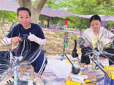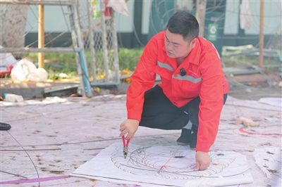 制作花灯时,有些工序不能同步进行,因此自贡的120位工人是根据工程进度分批来到青岛的。记者在之前的采访中了解到,来青岛制作灯组的工人个个经验丰富、技能精湛。他们带着自贡花灯前前后后“转战”过国内500多个城市,去过80多个国家和地区。这些工人中有很多毕业于四川轻化工大学彩灯学院。彩灯学院是培养中华彩灯文化及其产业发展所需各类高级管理、技术人才的摇篮,是中国艺术彩灯观光创意示范园区和教育生产科研培训基地,也是中国彩灯文化艺术的工艺与科学研究高地。