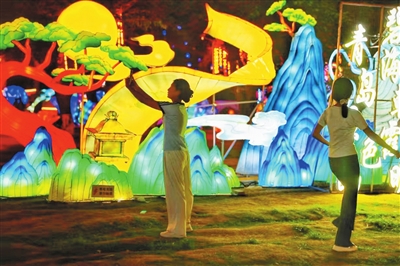 游客忙着拍摄灯组美图。 刘祖青 摄