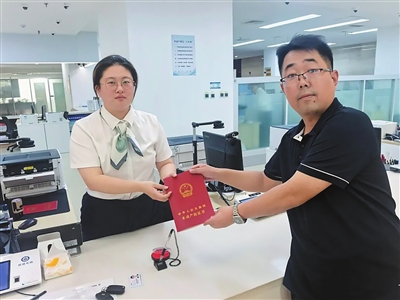 海丰航运智能仓储物流基地项目负责人孔祥忠领到不动产权证。青岛自贸片区供图