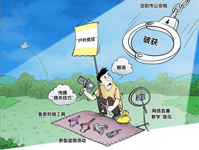 今年4月,沈阳市公安局浑南分局破获一起以网络直播“教学”猎鸟,引流售卖热成像夜视仪、弹弓等狩猎工具牟利的案件。