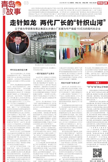 在位于即墨区的青岛雪达集团生产园区,每天早晨,董事长张皓都会沿着车间巡检路线缓步行走,间或与挡车工聊染色的色牢度,或弯腰查看刚下线的面料。这个坚持了近10年的习惯,总让老员工想起他的父亲——老厂长张世安当年深夜拿着手电筒在车间排查故障的故事。从1975年16个人挤在狭小的厂房里创业,到如今2000余名员工操控智能生产线;从3万元贷款起步的乡镇小厂,到年产值超15亿元的现代化集团,雪达集团走过的50年,恰是中国纺织业从生存挣扎到全球竞争的微观样本。日前,青岛早报记者走进雪达集团,探究中国纺织业的突围密码。