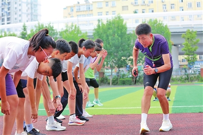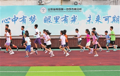 暑假期间,几乎每天早晨6点30分,青岛一中市南分校田径队的小队员们都会准时在操场集合,在兰淑彩老师的带领下进行训练。加速跑、高抬腿、交叉步、蛙跳……队员们练得一丝不苟。“每天有三四十名学生来训练,从小学一年级到初中三年级的学生都有,他们大多是田径队的队员,也有学校里的学生趁着暑假来锻炼身体。”兰淑彩说,这是她带领学校田径队暑期集训的第三年,学生们通过坚持训练,养成了良好的运动习惯,也增强了体质。