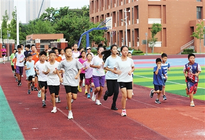 跑道上,师生们不惧酷暑,伴着清晨阳光奔跑,形成了一道亮丽的风景线。