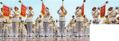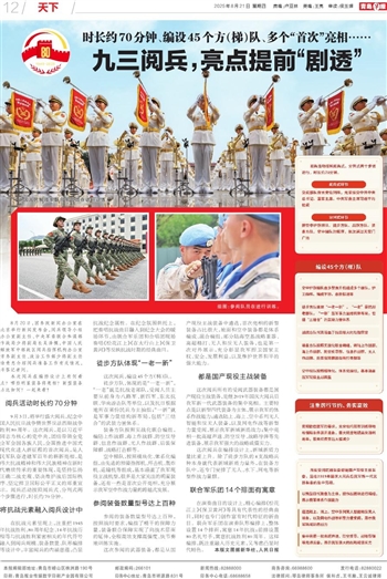 在演奏曲目的设计上,精心编排《松花江上》《保卫黄河》等具有代表性的经典曲目,同时也专门创作富有时代特征的新曲目。联合军乐团在演奏队形编排上,整体设置14个排面,寓意14年抗战;前排设置80名礼号手,寓意抗战胜利80周年。这样编排,既注重融入历史元素,又考虑凸显时代特色。本版文图据新华社、人民日报