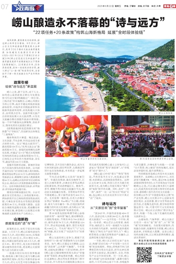 海风轻拂,裹挟着淡淡的酒香,掠过崂山的翠峦与碧海。8月20日,崂山区文化和旅游高质量发展大会举行,发布了《关于推动文旅业高质量发展 加快建设文旅强区行动方案(2025-2027年)》(以下简称《行动方案》)和《崂山区促进文化和旅游产业高质量发展若干政策措施》(以下简称《政策措施》)。22项重点任务、20条具体政策,犹如一组组跃动的音符,融入崂山“山·海·城”的宏伟交响,全面拉开了新一轮文旅融合与产业升级的序幕。