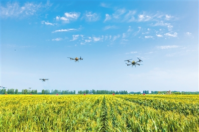 无人机在空中穿梭,有序开展“一喷多促”作业。