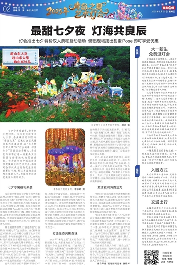 七夕今宵看碧霄,牵牛织女渡河桥。今天是传统节日七夕节,备受瞩目的2025年“青岛之夏” 艺术灯会正式推出系列浪漫活动,以“七夕特价双人票”和“灯会骑缘 相爱七夕”互动活动为核心,为市民与游客打造一场兼具文化氛围与甜蜜趣味的夏夜盛宴。作为近年来中国北方夏季规模最大的艺术灯会,本届灯会不仅成为青岛夜生活的重要打卡地,更以丰富的业态和旺盛的人气,为城市夜经济发展注入强劲动力。