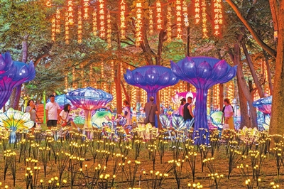 此外,灯会还秉持普惠理念,向医护人员、无偿献血志愿者、大一新生等群体免费开放,既传递了社会温暖,也进一步扩大了灯会的受众范围。“作为一名医护人员,能免费来参加这么精彩的灯会,感觉很温暖。”从事护士工作的张女士表示,灯会及其推出的互动活动非常精彩,让她深切感受到这座城市的浪漫和温暖。