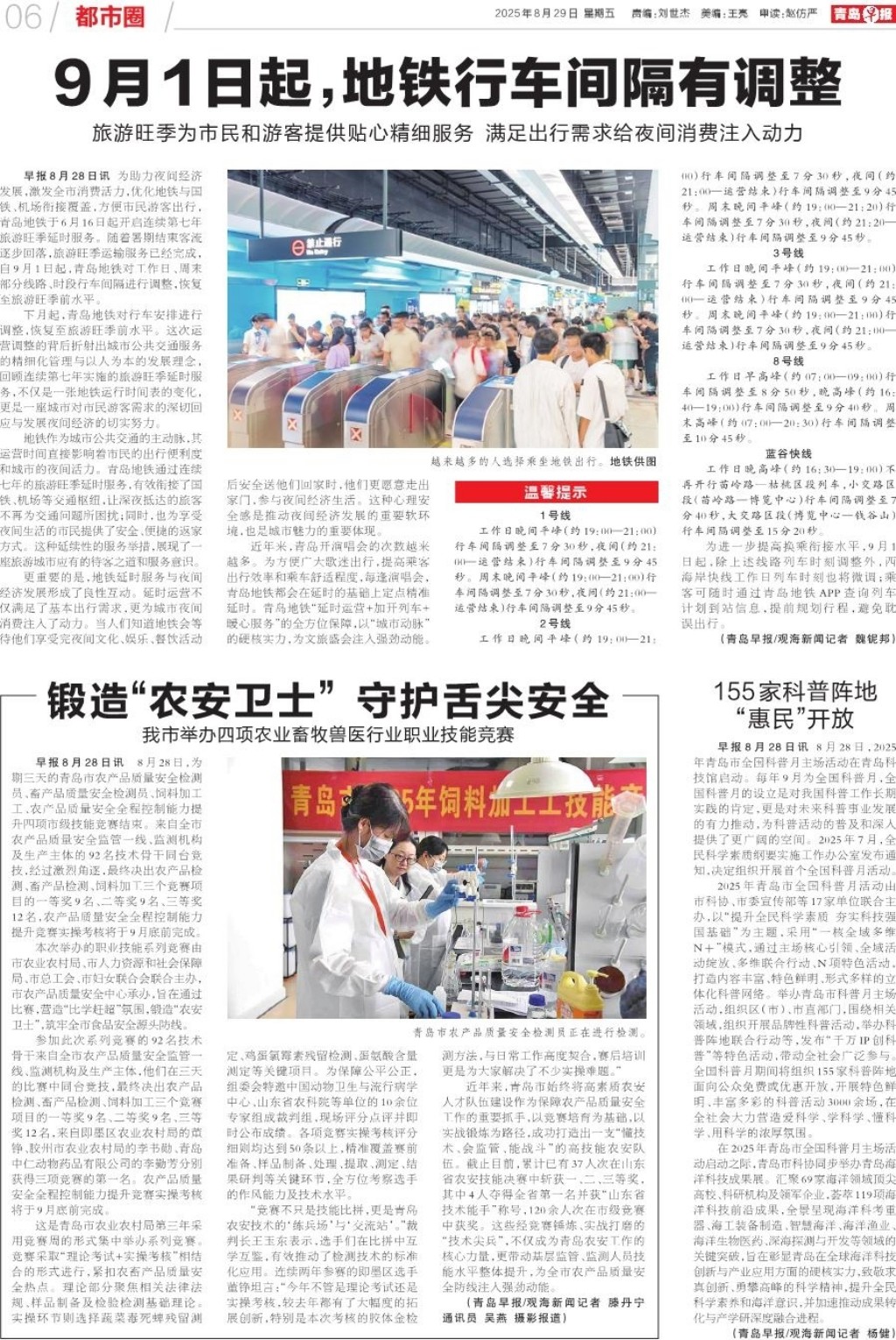 9月1日起,地铁行车间隔有调整