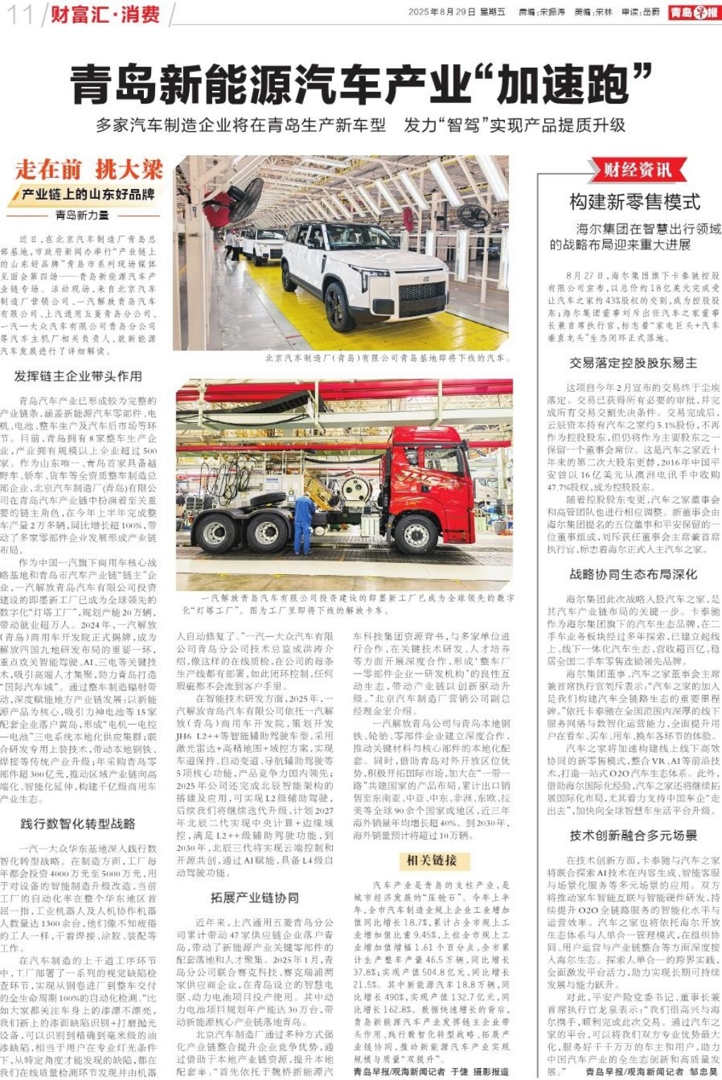 青岛新能源汽车产业“加速跑”