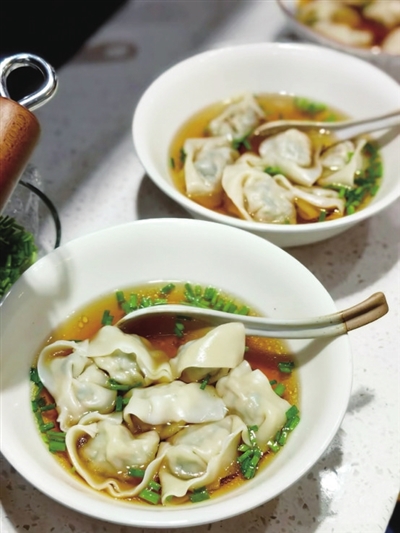 对于青岛的妈妈来说,包子饺子馄饨,这些都是信手拈来的早餐。一碗热气腾腾的鲜肉馄饨,绝对是小学生早餐的最爱。鲜肉的内陷把一个个像小布袋一样的馄饨撑得圆圆的,煮熟后,大碗里先放点生抽、再撒上一点虾皮,撕几片紫菜垫在碗底。然后舀起一大勺馄饨,像瀑布一样冲击碗底。顿时紫菜和虾皮被热汤冲散。端上桌前,再淋上几滴香油。咬开一个馄饨,里面内有乾坤,新鲜的汤汁、软嫩的肉馅,和着一口鲜亮的汤一起送进嘴里。一碗下肚,真是舒服。