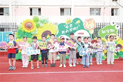 在青岛福州路小学,立足于一年级新生、家长及教师开设的《始业课程》,积极探索环境育德、课程育德、行动育德之新成效,在教学相长中实现教育与生活的紧密融合、学校与家庭的共同发力。8月30日上午,“福娃打卡启美好”仪式现场,作为《始业课程》的重要一环,老师们引导小福娃们识校园、读宝典、学礼仪、趣闯关、知常规。校园化身“成长探索馆”,新生根据各自兴趣喜好,自主选择喜欢的关卡如“鱼跃龙门”养习惯、“朱砂启智”爱学习、“击鼓鸣志”诉情怀、“萌动列车”留印记、“结识新友”乐交往。在教室里,班主任为新生们开启生动、有趣的入学第一课,对上下课常规、行为规范、安全纪律、礼仪习惯等耐心教授。