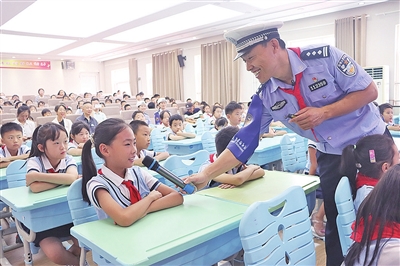 8月31日,以“安全启航 快乐成长”为主题的市北区文明交通进校园暨交通安全主题课堂“开学第一课”活动在青岛桦川路小学开讲。活动由市北区委宣传部、青岛市公安局交通管理支队市北区大队、市北区教体局、市北区妇联联合举办,引导同学们“知危险,会避险;遵交规,保安全”,增强学生的交通安全意识和自我防护能力,倡导师生家长携手践行文明交通,共同建设文明校园、平安校园。活动中,民警紧密结合同学们日常出行实际状况,通过集中讲座、趣味游戏、互动问答等形式,向同学们讲解交通知识,引导同学们从开学第一天起就牢固树立交通安全意识,养成文明交通、文明出行的良好习惯。