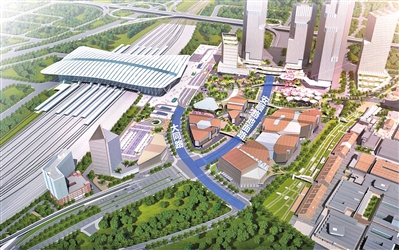 大同路(原站前路)及安顺路地面道路效果图(蓝色为此次通车路段)。
