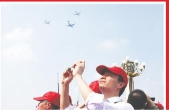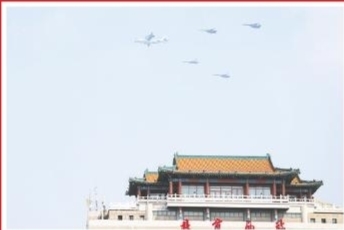 这是加受油机梯队通过天安门广场。