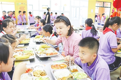 青岛博文小学校长陪餐。