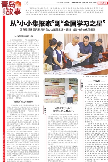 现在,孙见东不仅是一位资深的报刊收藏家、红色基因的传承者,众多文化活动的策划者,更是一位被广泛认可的学习典范。这些年来,他先后被评为青岛西海岸新区百姓学习之星、青岛市百姓学习之星、山东省百姓学习之星,2025年更是在众多候选人当中脱颖而出,获得新时代“全国百姓学习之星”荣誉称号,他也是青岛西海岸新区2025年唯一一位被评为新时代“全国百姓学习之星”国家级荣誉称号的人。