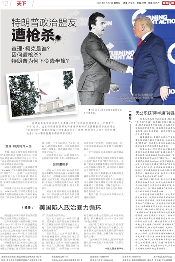 柯克遭枪击身亡后,特朗普下令全国降半旗志哀,直至14日傍晚6时。