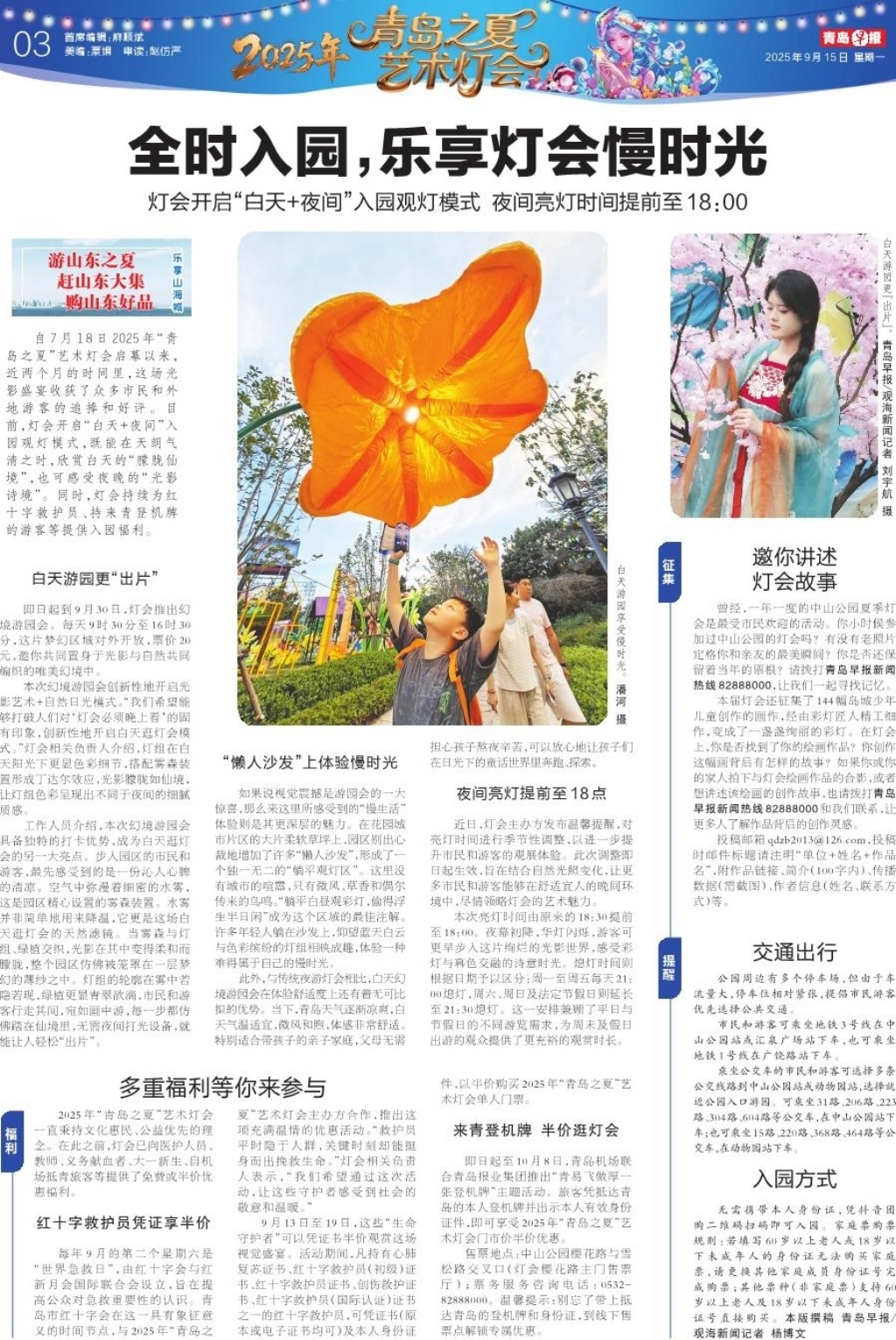 A01 头版 A02 划重点 A03 2025年青岛之夏艺术灯会 A04 周一见 A05 周一见 A06 周一见 A07 大爱青岛 A08 都市圈 A09 身边事 A10 体育 A11 瞰青岛 A12 观天下
