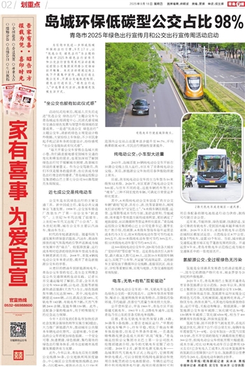 今年7月印发的《青岛市加快经济社会发展全面绿色转型实施方案》提出,大力推广新能源汽车,推动城市公共服务车辆电动化替代。这意味着,今后青岛的公交车将更加绿色低碳。一个安全可靠、快速便捷、绿色低碳、集约高效的绿色出行服务体系,将为这座城市高质量发展提供有力支撑。