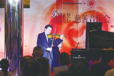 吕思清在“爱熠天使 健康童行”慈善音乐会现场深情演奏。