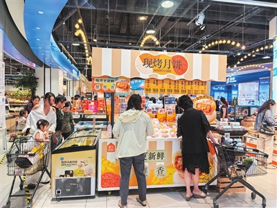 与丹香的“接地气”不同,连锁商超盒马则将月饼的“新奇感”拉满,推出多款突破想象的跨界口味,吸引消费者“打卡尝鲜”。在盒马青岛金狮广场店,记者看到“榴莲冰皮月饼”“贵州酸汤牛肉月饼”“芝士鲜肉月饼”等新品被陈列在独立展台。此外,盒马还针对健康需求推出“低糖流心奶黄月饼”“低糖豆沙月饼”,满足老年人与控糖人群的消费需求。