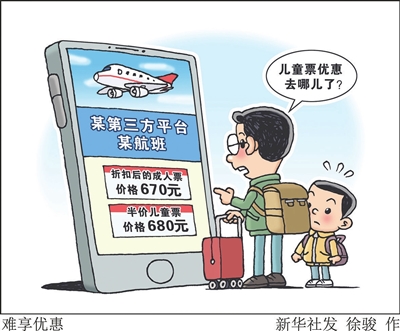 平台与航空公司之间儿童票政策执行存在差异,也是儿童优惠票“不优惠”的重要原因。有的平台没有全面对接所有航司的儿童票优惠政策,有的平台本身购买成人票可叠加使用会员折扣、积分兑换等福利,还有个别平台存在“霸王条款”,对部分机票擅自加价。