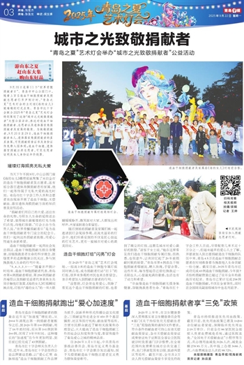 在2025年“青岛之夏”艺术灯会现场,一组高2米的造血干细胞专属灯组同时被点亮,成为捐献者们必“打卡”的灯组,很多来参观的市民也来合影留念,表示希望加入到捐献志愿者的行列。