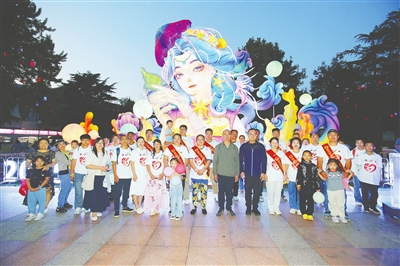 造血干细胞捐献者及家属在《海的女儿》灯组前合影。