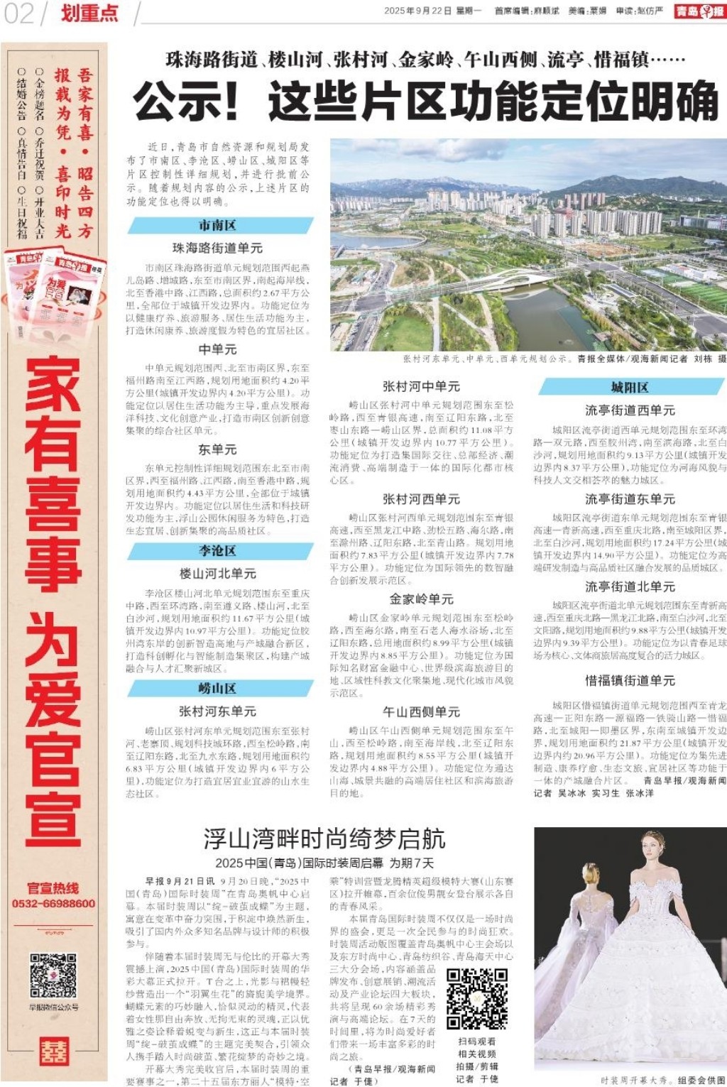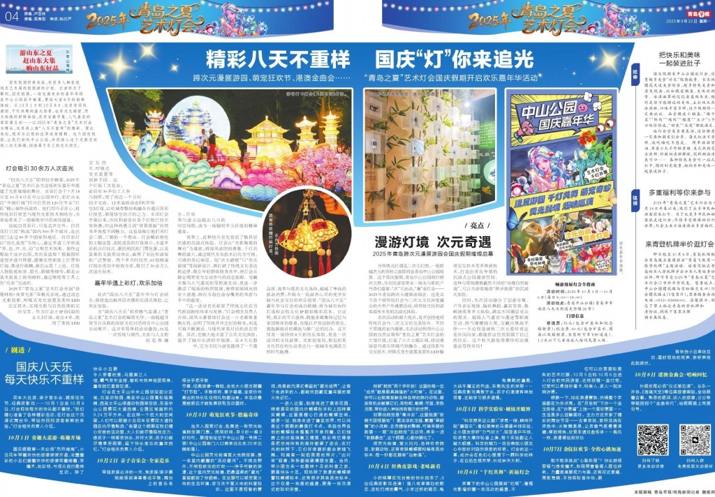 A01 头版 A02 划重点 A03 2025年青岛之夏艺术灯会 A04 2025年青岛之夏艺术灯会 A06 今日看点 A07 周一见 A08 周一见 A09 周一见 A10 身边事 A11 文体 A12 观天下周刊
