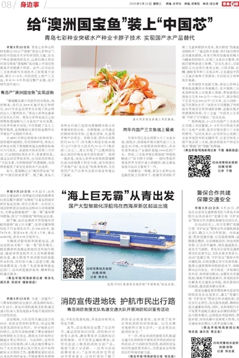 早报9月23日讯 青岛七彩种业科技有限公司(以下简称“青岛七彩种业”)依托中国海洋大学科研团队力量,在水产种业领域持续攻关,让源自澳大利亚的国宝级鱼“墨瑞鳕”成功端上中国百姓餐桌并返销澳大利亚。此外,公司还在三文鱼种源与养殖技术上取得重大突破,预计1—2年,市民将吃上国产三文鱼,未来3—5年形成完整产业链,逐步替代国外进口。