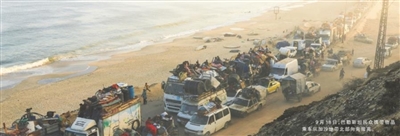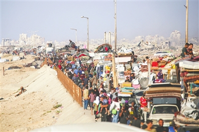 9月18日,巴勒斯坦民众携带物品乘车从加沙地带北部向南撤离。