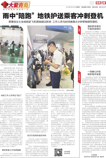 “虽然风雨无情,但你们有情!”近日,社交平台上一则带着温度的表扬帖,让青岛地铁上发生的一场“与时间赛跑”的暖心故事被人们所熟知:一位因雨险些错过航班的乘客,在工作人员的全程护航下顺利登机。在这则表扬帖里,字里行间满是对这座城市的感激。9月25日,青岛早报记者联系到乘客张女士,听她讲述了事情的经过。