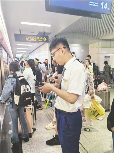 收到张女士求助后,地铁工作人员袁伟盛开始联系调度。 张女士供图